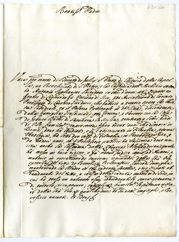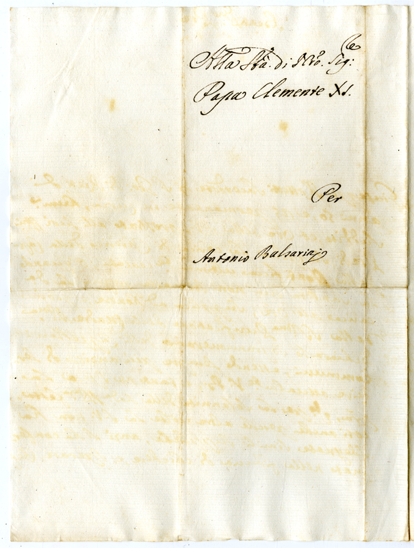 Lettera di Antonio Balsarini a papa Clemente XI (1700-1721)