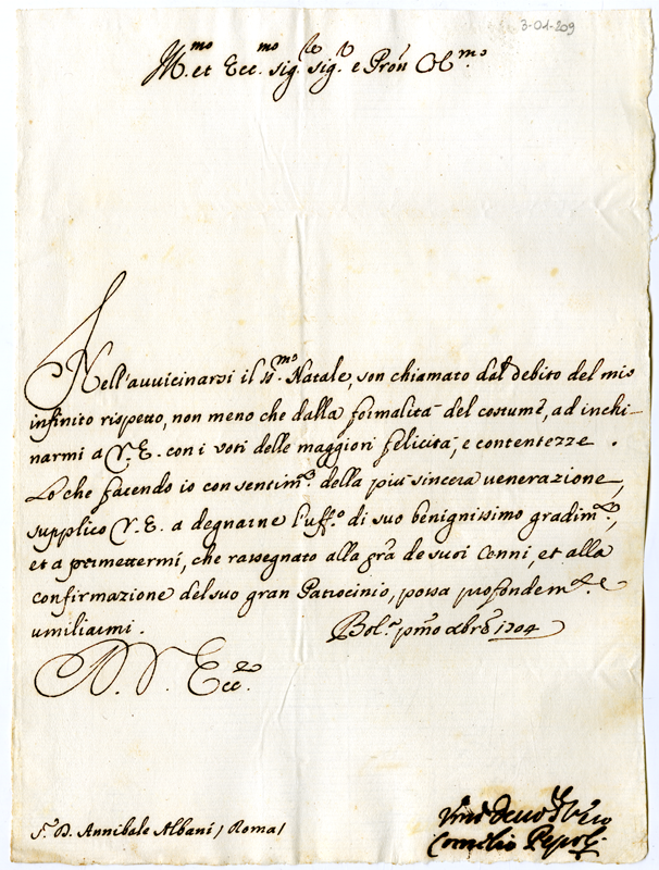 Lettera di Cornelio Pepoli ad Annibale Albani (1704 dicembre 1)