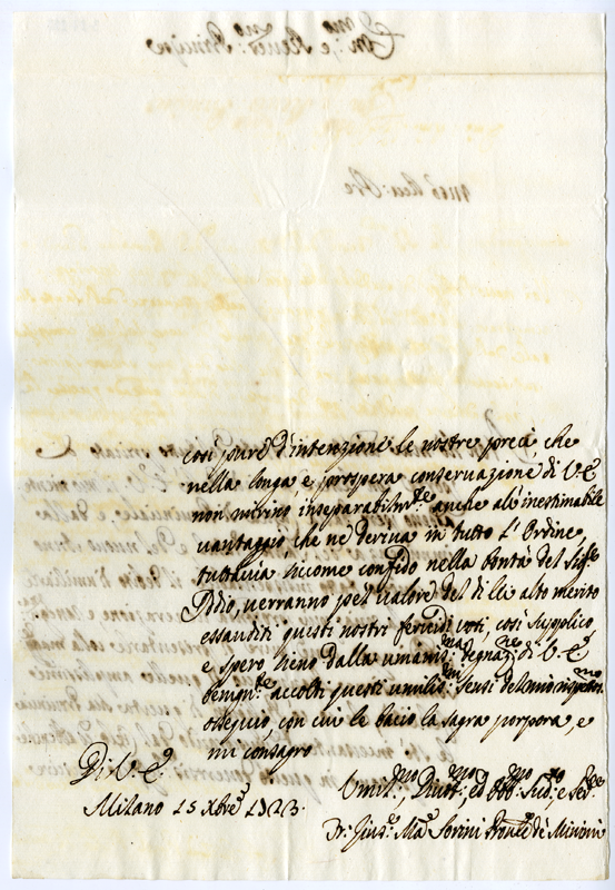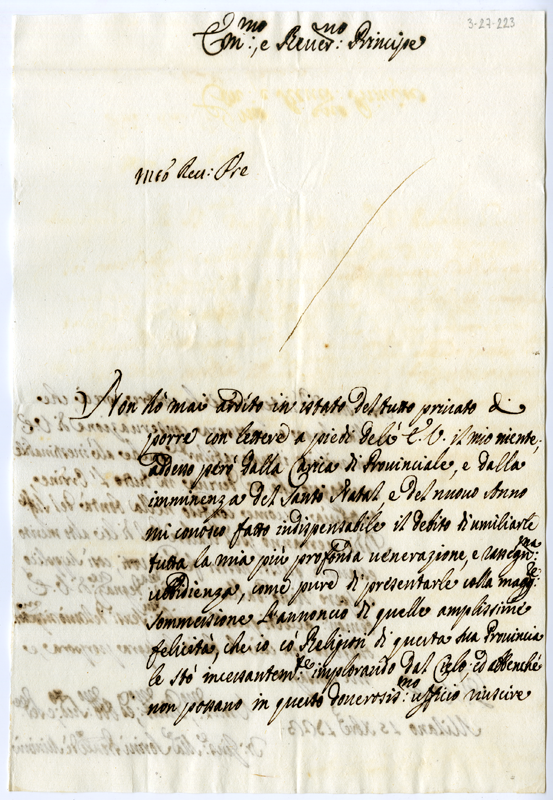 Lettera di fra Giuseppe Maria Sorini al cardinale Annibale Albani (1723 dicembre 15)