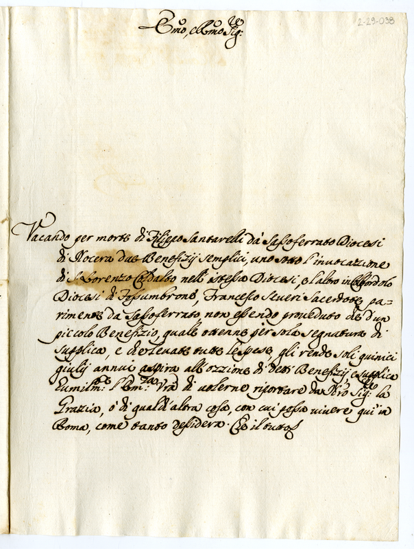 | dc.description | Chiede i benefici vacanti per morte di Filippo Santarelli | |