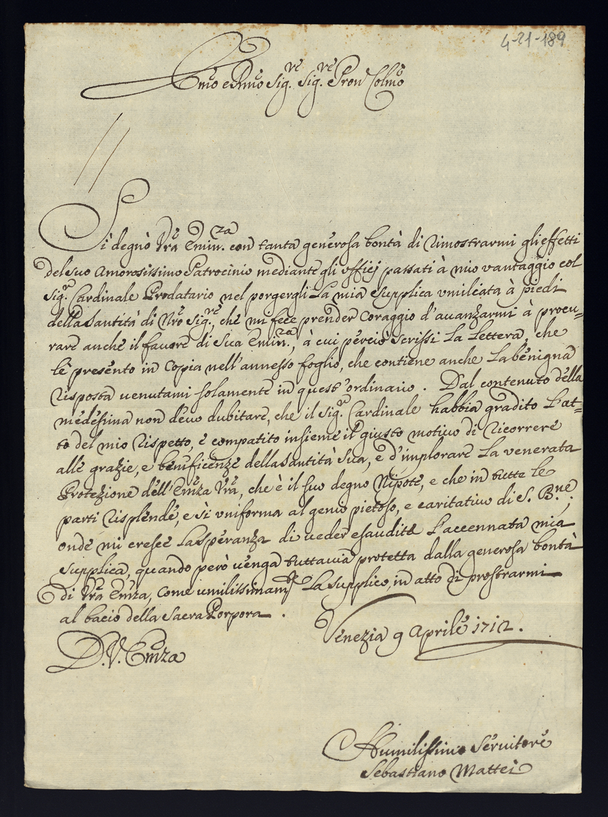 1712. Lettere diverse. Semestre primo