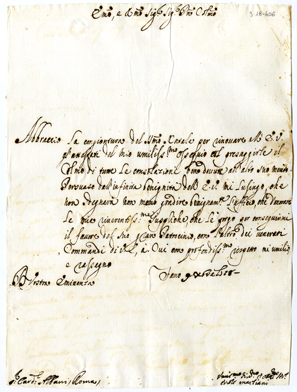 Lettera di Ercole Marliani al cardinale Annibale Albani (1718 dicembre 9)