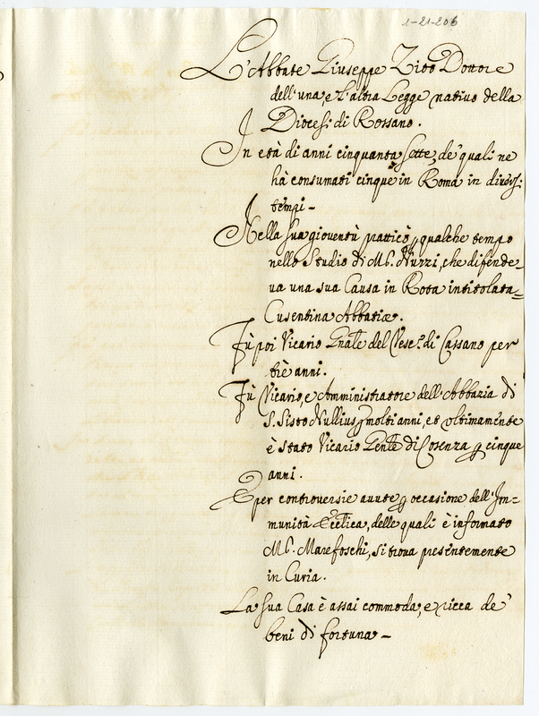 Incarichi dell'abate Giuseppe Zito (1700-1721)