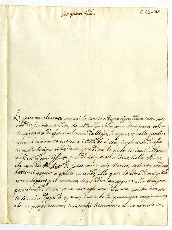 Lettera di Angela Vaini Litta a papa Clemente XI (1703 agosto 31)