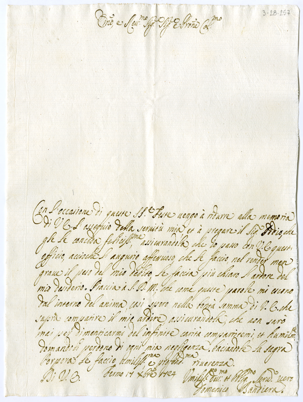Lettera di Domenico Bandiera al cardinale Annibale Albani (1724 dicembre 17)