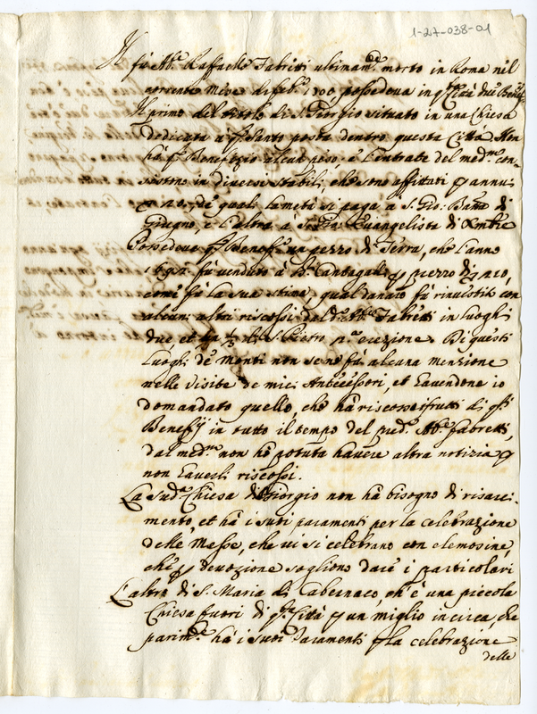 4. Benefici goduti dal defunto Abate Raffaello Fabretti (1700)