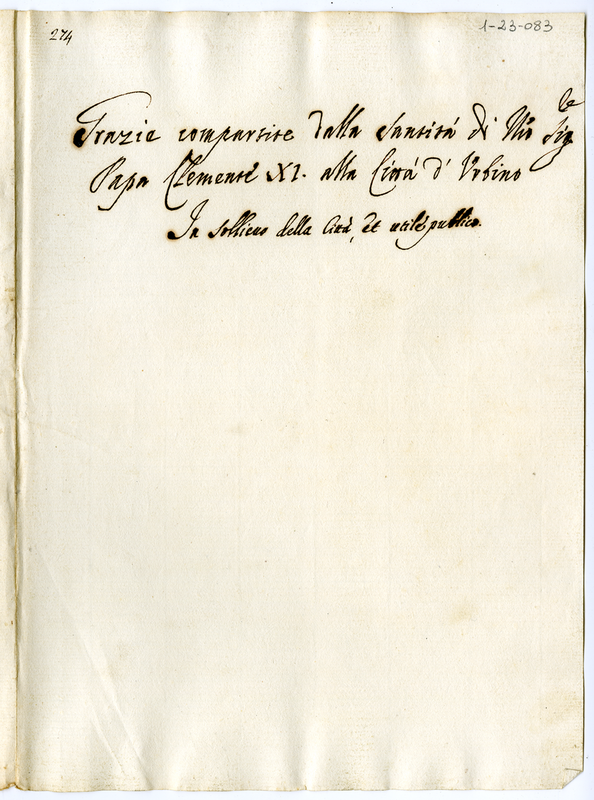 Grazie compartite dalla Santità di Nostro Signore Papa Clemente XI alla città d'Urbino in sollievo della città, et utile pubblico (1700-1721)