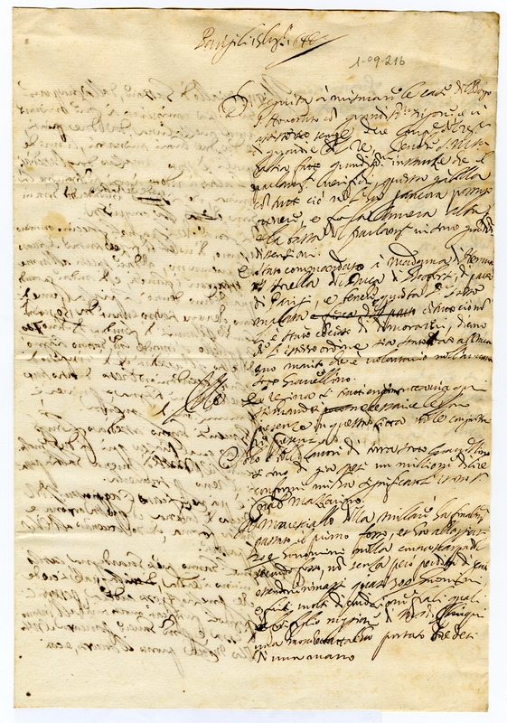 Minuta di lettera scritta da Malatesta Albani al cardinale Barberini Francesco (1644 luglio 15)