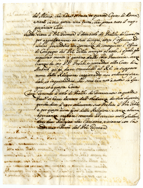 Sui disordini che avvengono nel governo dei Domenicani sotto il provinciale di Terra Santa, fra Errico di Guzman padre maestro (1700-1721)