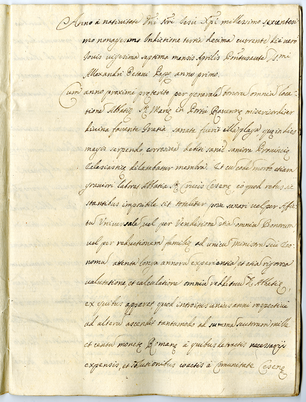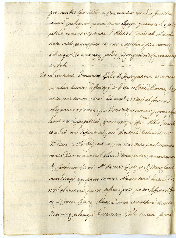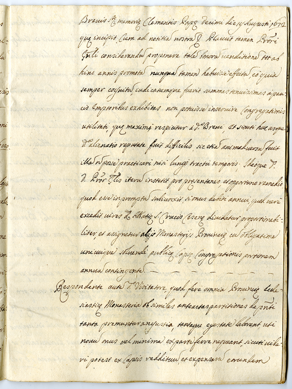 Memoriale fatto a Cremona il giorno 15 agosto 1690 e relativo al memoriale del definitorio generale dell'ordine lateranense per questioni di compravendita relativa ai canonici lateranensi di Bologna (1690 aprile 27)