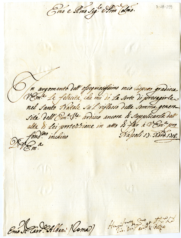 Lettera al cardinale Annibale Albani (1718 dicembre 17)