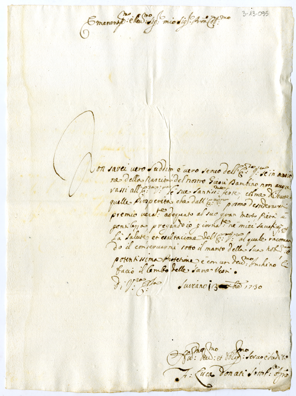 Lettera di Luca Donati al cardinale Annibale Albani (1730 dicembre 13)