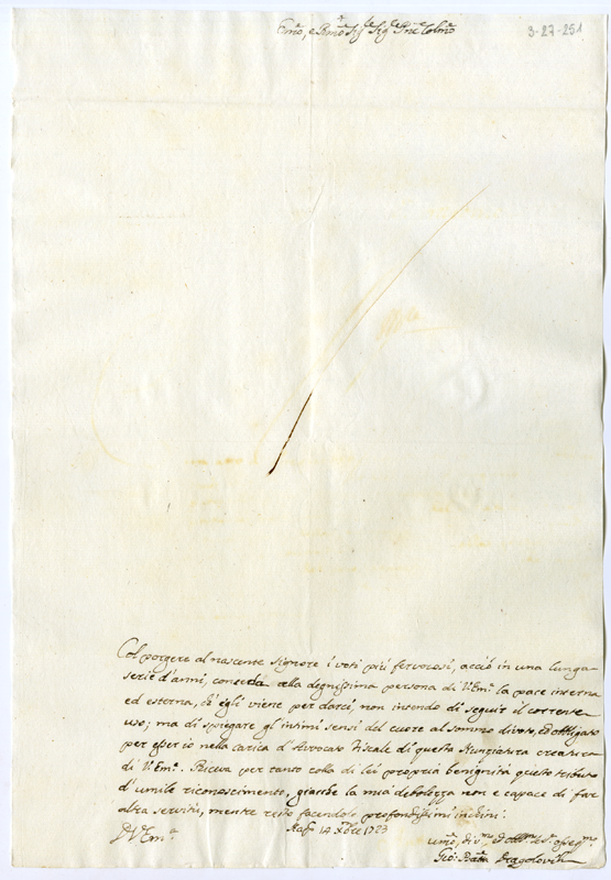 Lettera di Giovanni Battista Dragolovich al cardinale Annibale Albani (1723 dicembre 14)