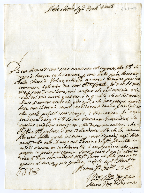 Lettera del vescovo Alario al Cardinale Annibale Albani (1715,gennaio 1)