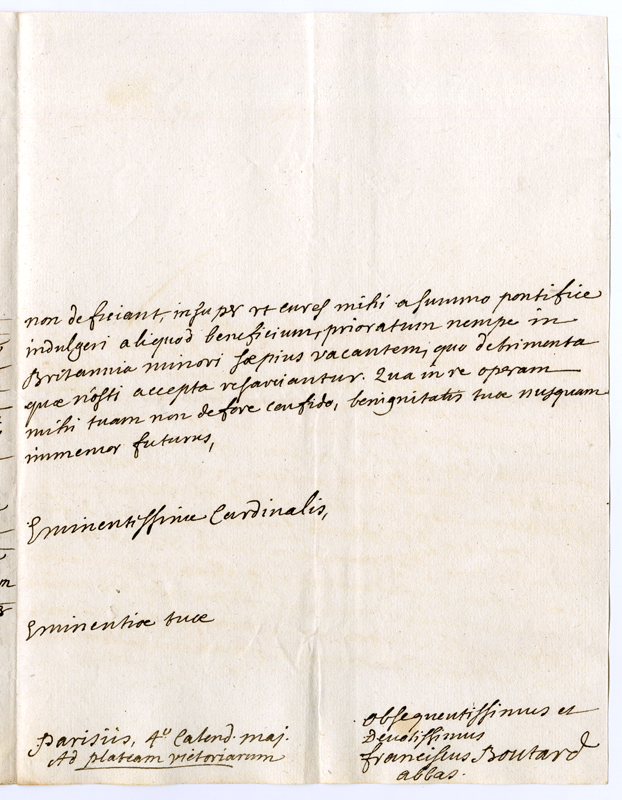 Lettera di Francesco Boutard al Cardinale Annibale Abani (1716 aprile 29)