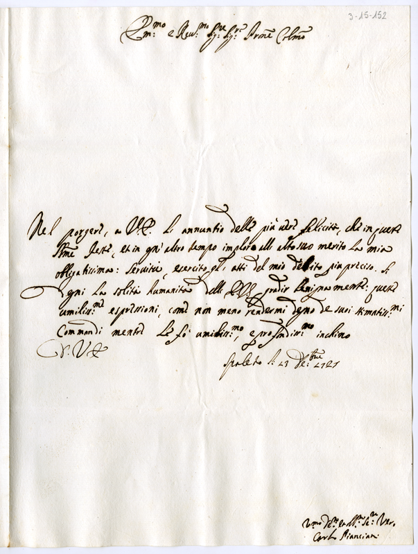 Lettera di Carlo Pianciani al cardinale Annibale Albani (1727 dicembre 13)