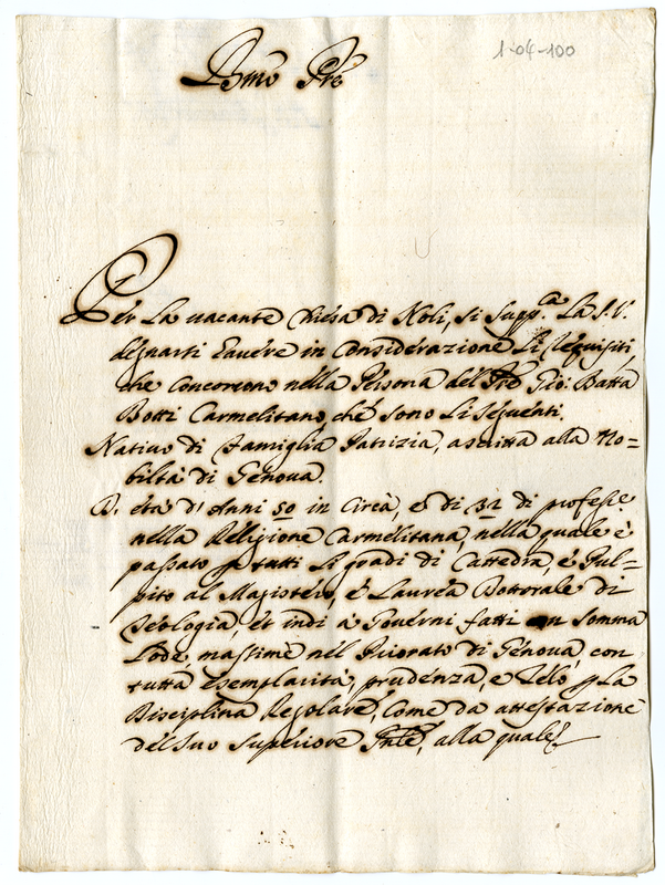 Raccomandazione a favore di padre Giovanni Battista Botti per il vacante vescovato di Noli