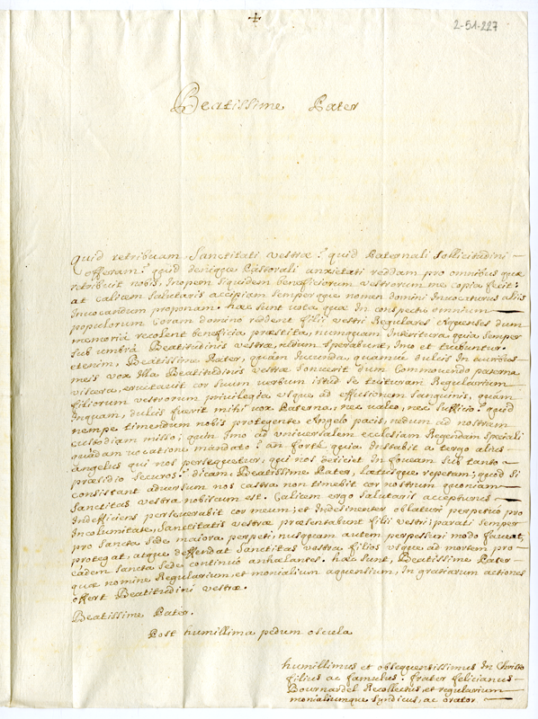 Lettera di Feliciano Bournardel a papa Clemente XI (1700-1721)
