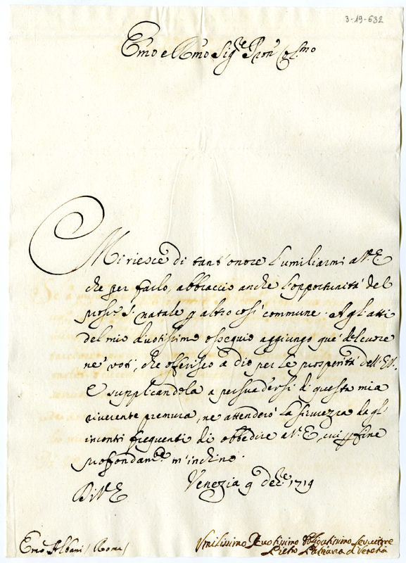 Lettera di Pietro patriarca di Venezia al cardinale Annibale Albani (1719 dicembre 9)