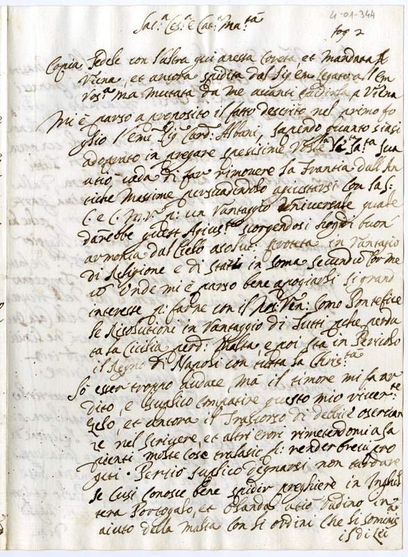 Copia fedele con l'altra qui annessa corretta e mandata a Vienna e ancora spedita dal signor eminentissimo Legato all'Eminenza vostra ma cambiata da me per spedirla a Vienna