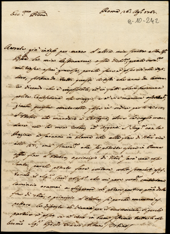 Lettere ricevute in Urbino dal Signor Principe Orazio Albani ultimo di questo nome nell'anno 1767