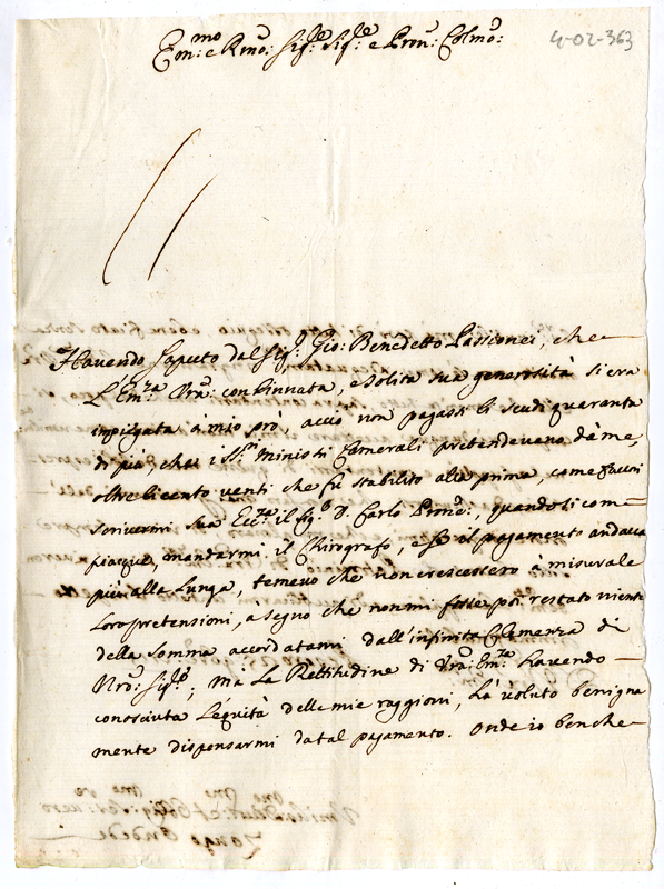 Ringrazia per avergli riconosciuto il diritto di non pagare 40 scudi da lui pretesi dai Ministri Camerali