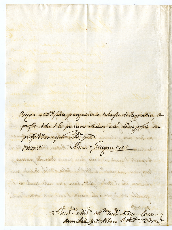 Lettera del cardinale Annibale Albani a papa Clemente XI (1713 giugno 7)