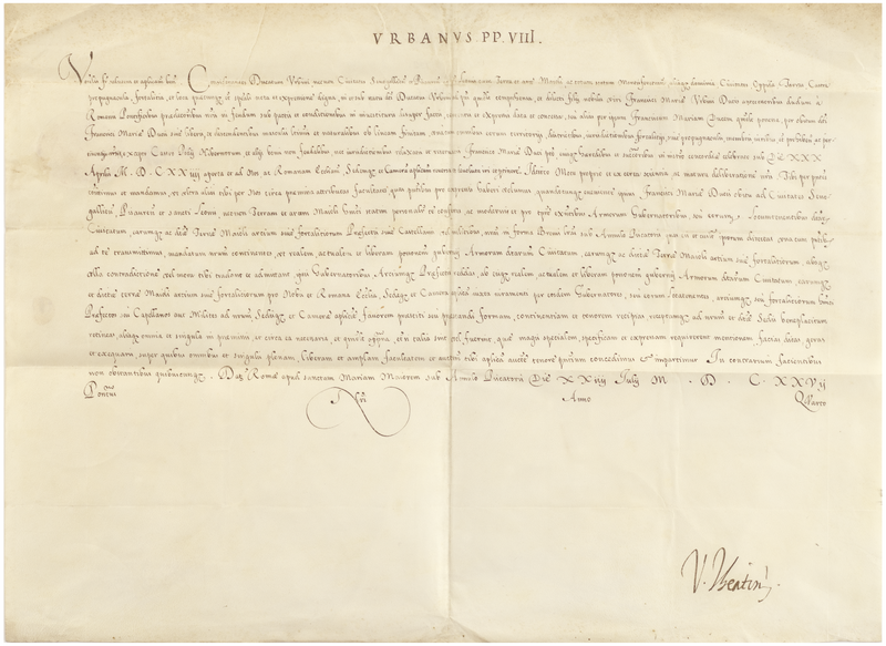 Breve di papa Urbano VIII al vescovo di Fossombrone