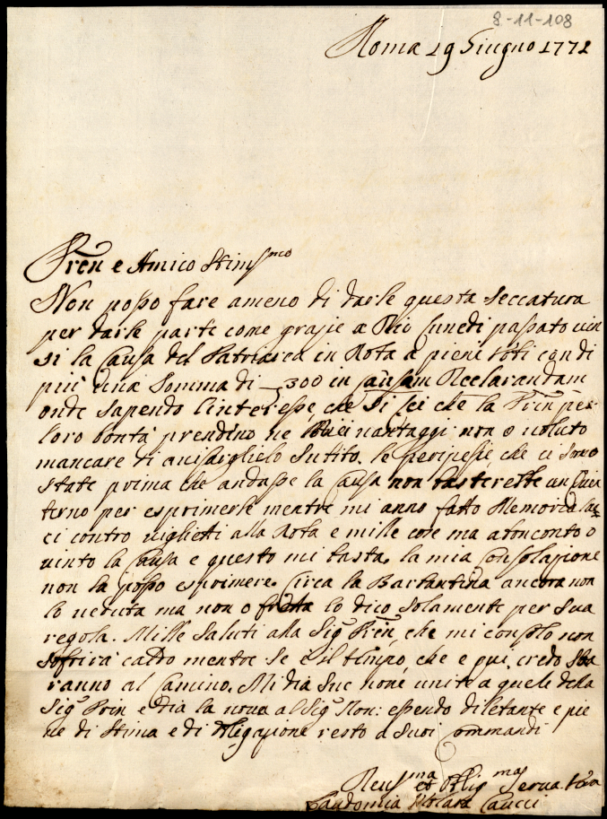 Lettere ricevute in Urbino dal Signor Principe Orazio Albani ultimo di questo nome nell'anno 1771