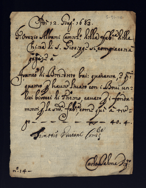 Bollette della Venerabile Compagnia di S. Giuseppe per la Fabrica