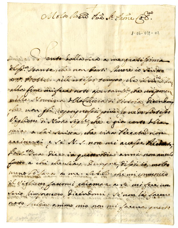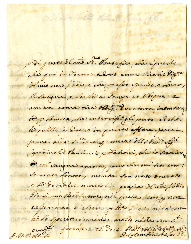 Lettera di Colombino Bassi ad Antonio Maria Fede (1714 settembre 5)