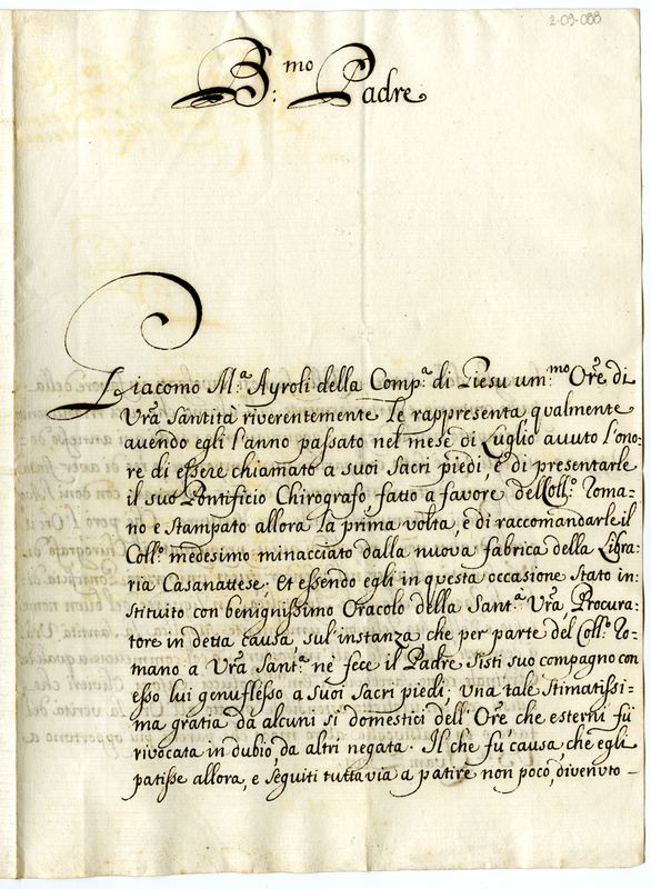 Lettera di Giacomo Maria Ayroli della compagnia di Gesù a Clemente XI (1700-1721)