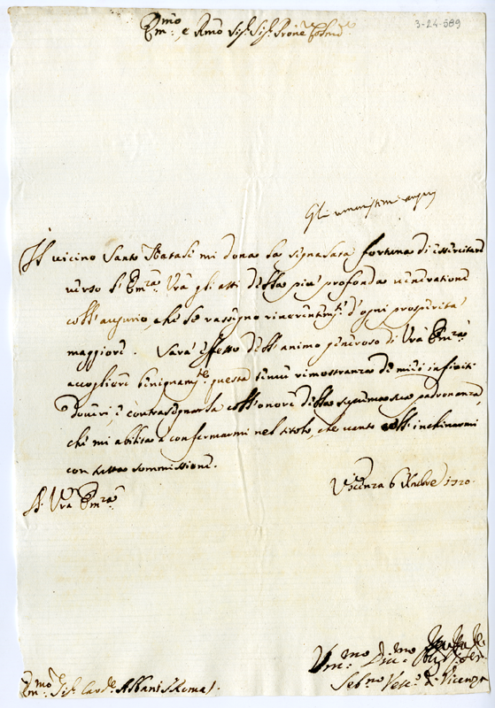 Lettera di Sebastiano vescovo di Vicenza al cardinale Annibale Albani (1720 dicembre 6)