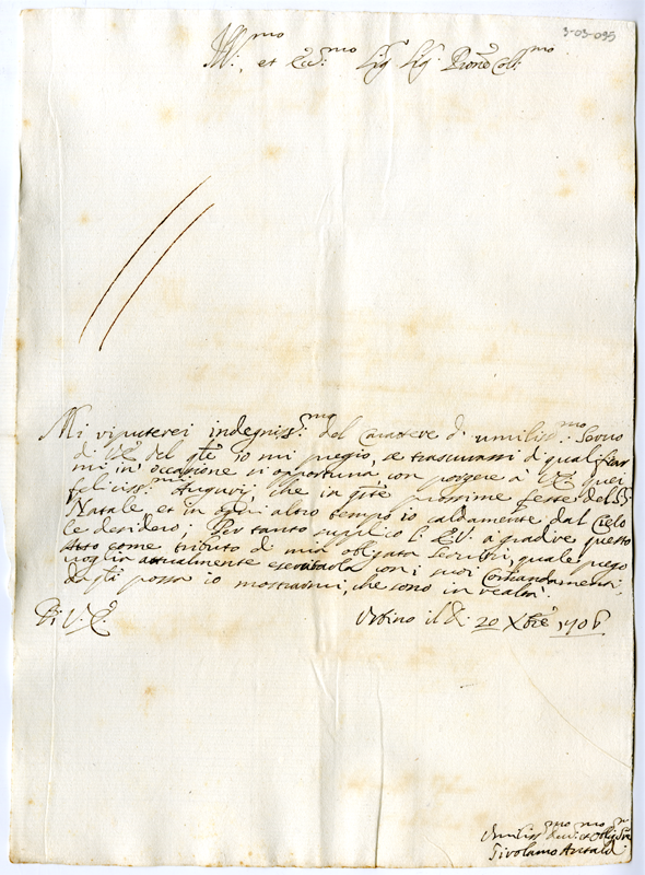 Lettera di Girolamo Antaldi ad Annibale Albani (1706 dicembre 20)