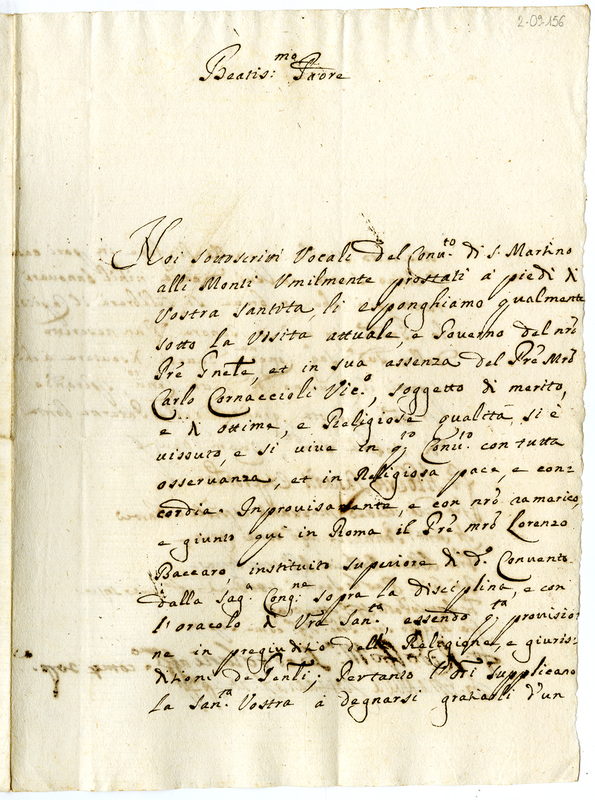 Lettera del convento e padri di San Martino alli Monti a Clemente XI (1700-1721)