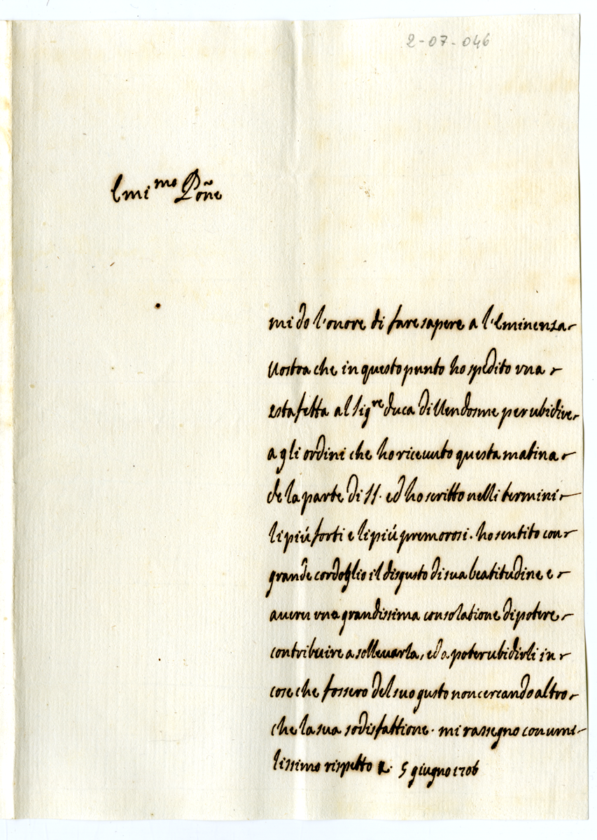 Riferisce di aver spedito una staffetta al duca di Vendome