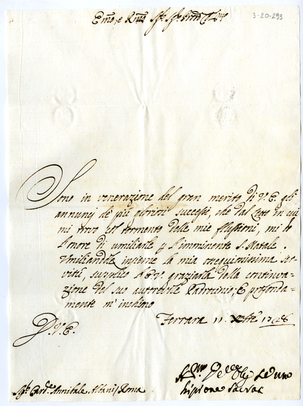 Lettera di Scipione Sacrati al cardinale Annibale Albani (1728 dicembre 11)