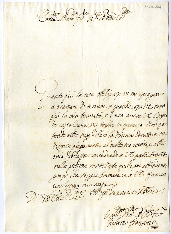 Lettera di Girolamo Fransone al cardinale Annibale Albani (1715 dicembre 10)
