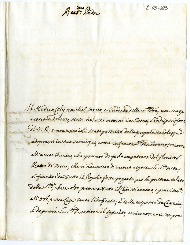 Lettera del medico Leli a papa Clemente XI (1710 marzo 8)