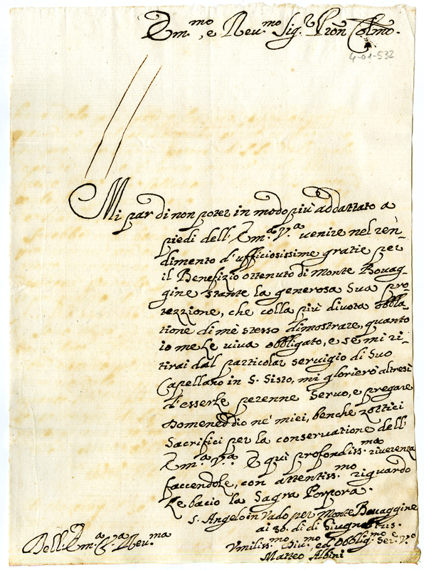 Lettera di Matteo Albini al Cardinale Annibale Albani (1715 giugno 30)