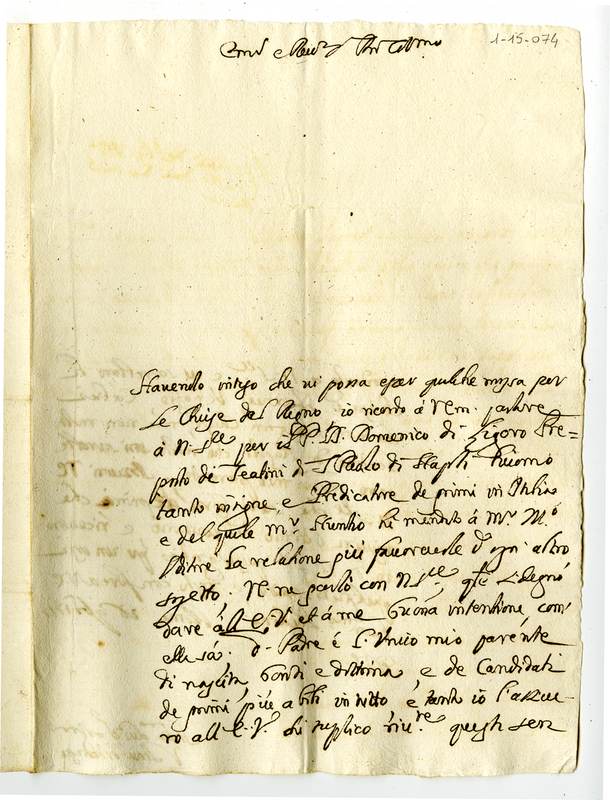 Lettera di raccomandazione a favore di Domenico De Liguoro per l'assegnazione di alcune chiese vacanti