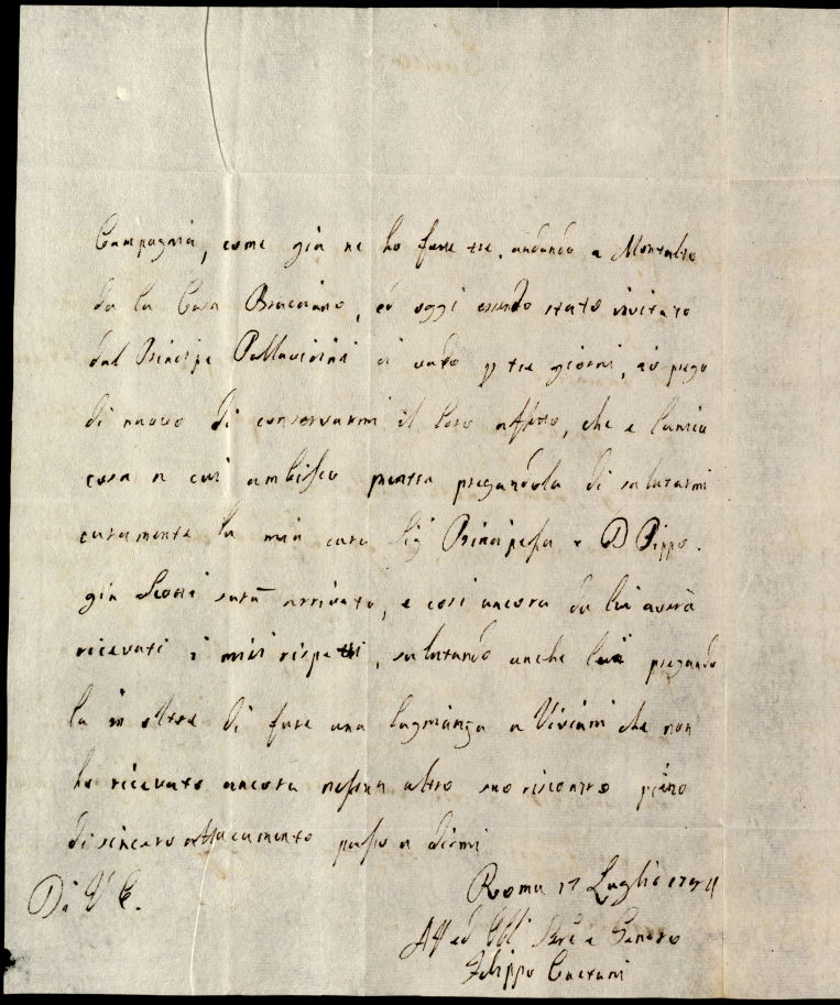 Lettere diverse ricevute in Colbordolo, Pesaro e Senigallia nel 1784