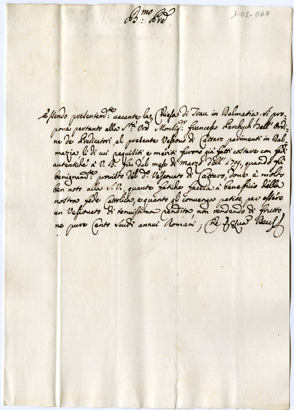 Il vescovo di Cattaro Francesco Parchych chiede di essere nominato vescovo di Traù.