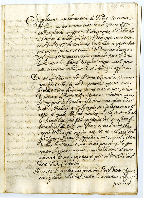 Supplica dei padri certosini e dei rettori dell'ospedale maggiore di Avignone (1700-1721)