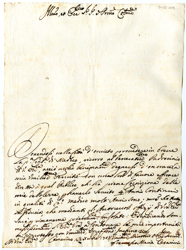 Lettera di Francesco Maria Cesarini ad Annibale Albani (1705 dicembre 22)