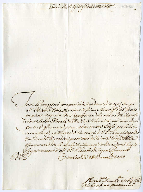 Lettera di Valentino Matteucci al cardinale Annibale Albani (1720 dicembre 18)
