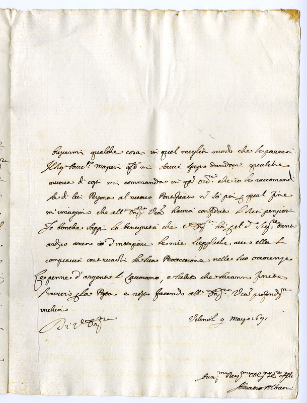 Lettera di Orazio Albani a Giovanni Francesco Albani (1691 marzo 9)