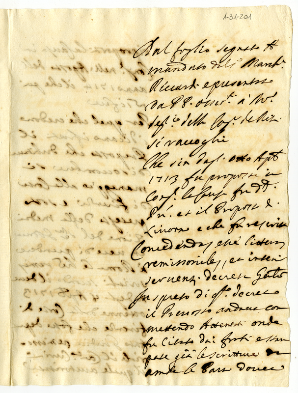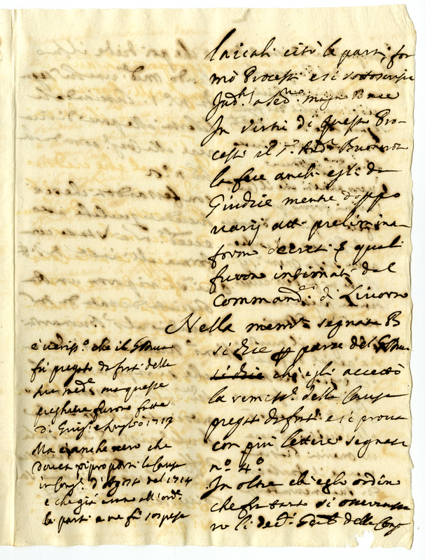 Archivio Albani|"Scritture spettanti alli frati dell'ordine de minori Conventuali, Osservanti, Riformati, Capuccini"|"1715 Livorno Lettere, e altre scritture appartenenti alle differenze vestenti tra li Frati Minori Osservanti di San Francesco di Santa Maria di Livorno, e il Proposto di quella Collegiata"|Documenti contenuti