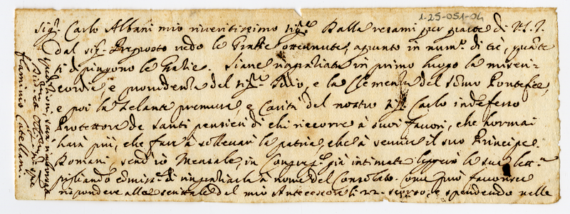 Biglietto di Flaminio Catellani al Signor Carlo Albani (1670)