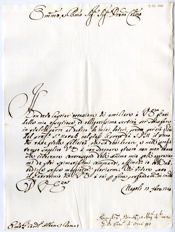 Lettera di Giovanni Battista vescovo al cardinale Annibale Albani (1720 dicembre 17)